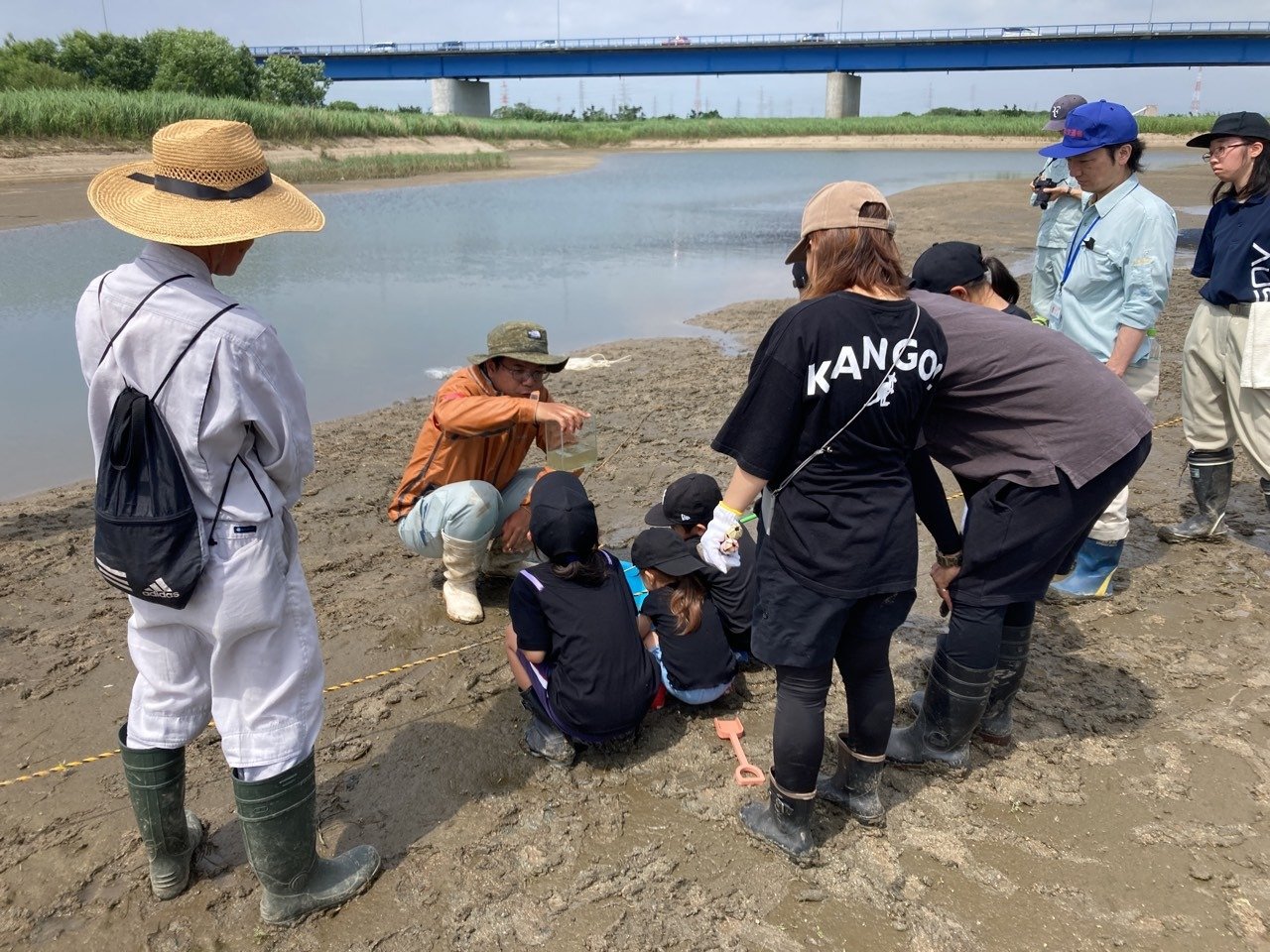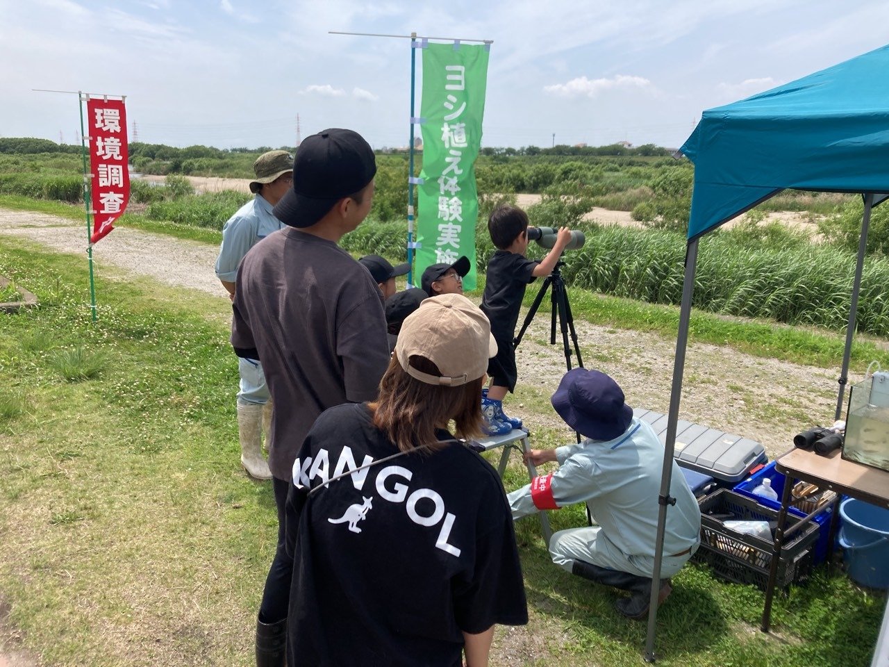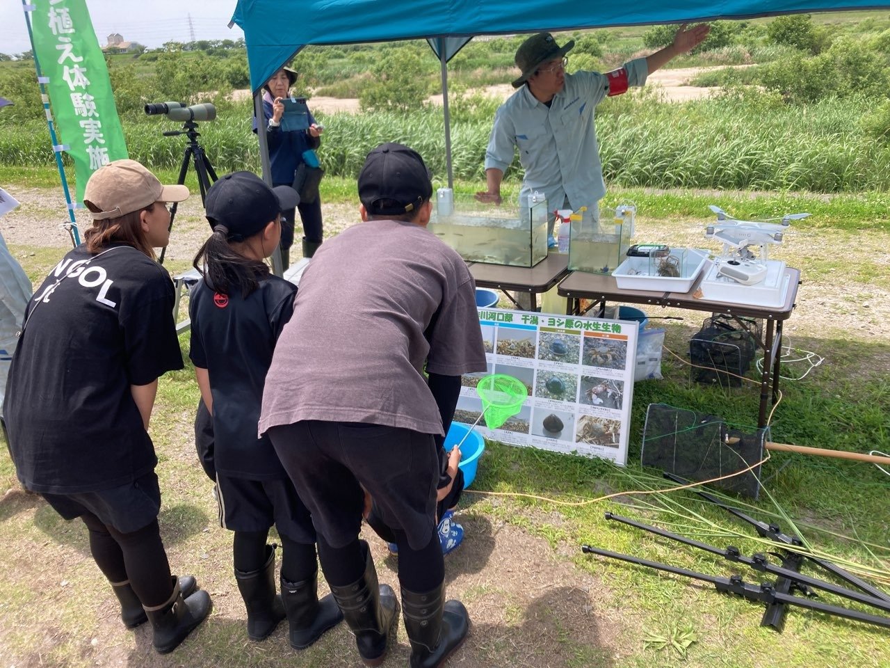 2023年06月 ヨシ植え体験会に参加しました 令和5年5月27日(土)国土交通省主催のヨシ植え体験会に、社員と家族が参加しました。 ☆ ヨシ原を復活させ、矢作川の環境を良くすることを目的にヨシ苗を植えました。 主催者より矢作川の自然環境について説明を聞きました。 ヨシ苗を植えているところです。 ☆ ヨシ原は、野鳥やカニ、小魚など多くの生物の水辺の棲みかとなるとのことです。 矢作川に生息する水生生物について説明を聞きました。 野鳥を観測しました。 投網にて小魚を捕ってくれました。 捕った小魚を説明してくれました。