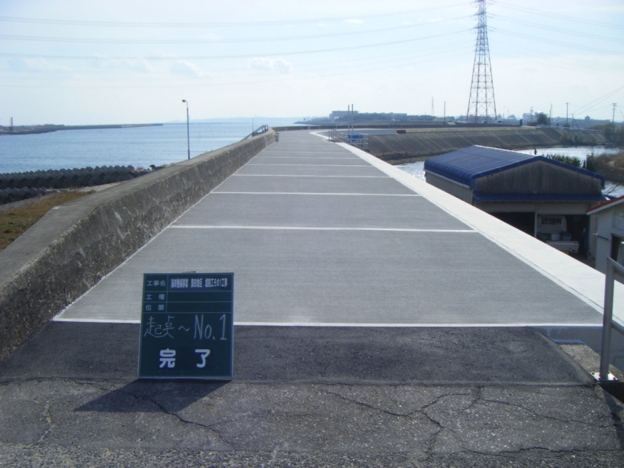 本工事は、愛知県西三河南部地区に当たる場所で、県が管理する既存の海岸堤防を耐震化する工事です。この堤防は、かつてこの中部地方に甚大な被害をもたらせた、昭和34年9月の伊勢湾台風によって決壊し、大量の海水が浸水した場所で、当時、その緊急復旧の際に、堤体の基盤材として投入されたと思われる大きな岩石等が堤体深層部に多く点在しており、この工事の構造的特色である鋼矢板の圧入施工に於いては、大変苦労しました。工事そのものは発注者の御理解、協力も有り、無事工期内に完了しました。出来栄えに於いても、高い品質が確保できたと発注者からも評価を頂いています。