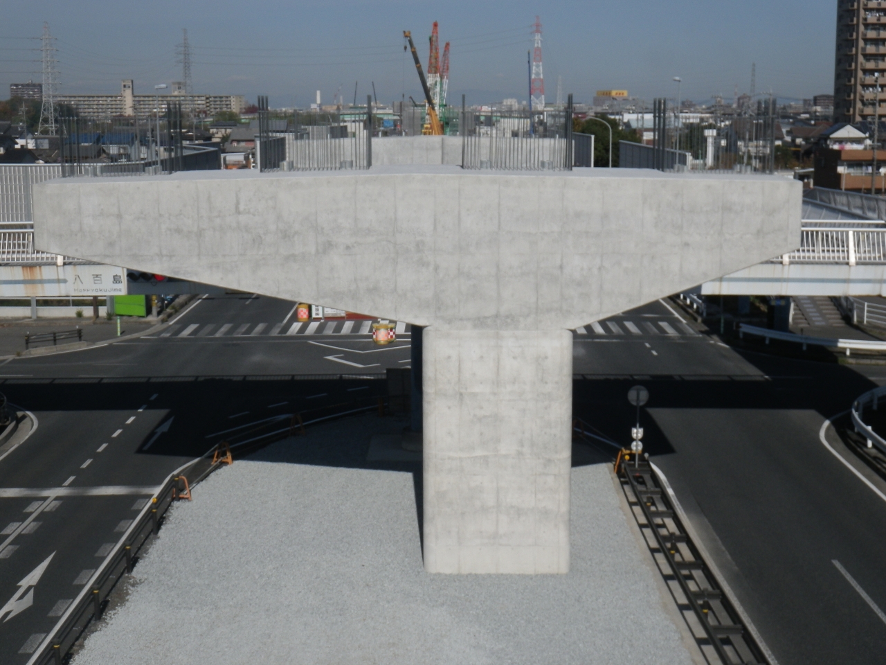 平成27年度 名二環八百島交差点南下部 国道交通省愛知国道事務所の発注工事であり、名古屋環状二号線の橋梁下部工事です。現場は交差点横で有り現道に挟まれた箇所で、また歩道橋が近接して非常に狭い作業ヤードにて工事を行いました。狭いヤードにて施工する為、施工手順、材料等の整理整頓、安全管理に十分配慮し狭い現場を効率よく施工出来る様に、協力業者さんと協力して施工を行った為、無事に工事が完了できました。