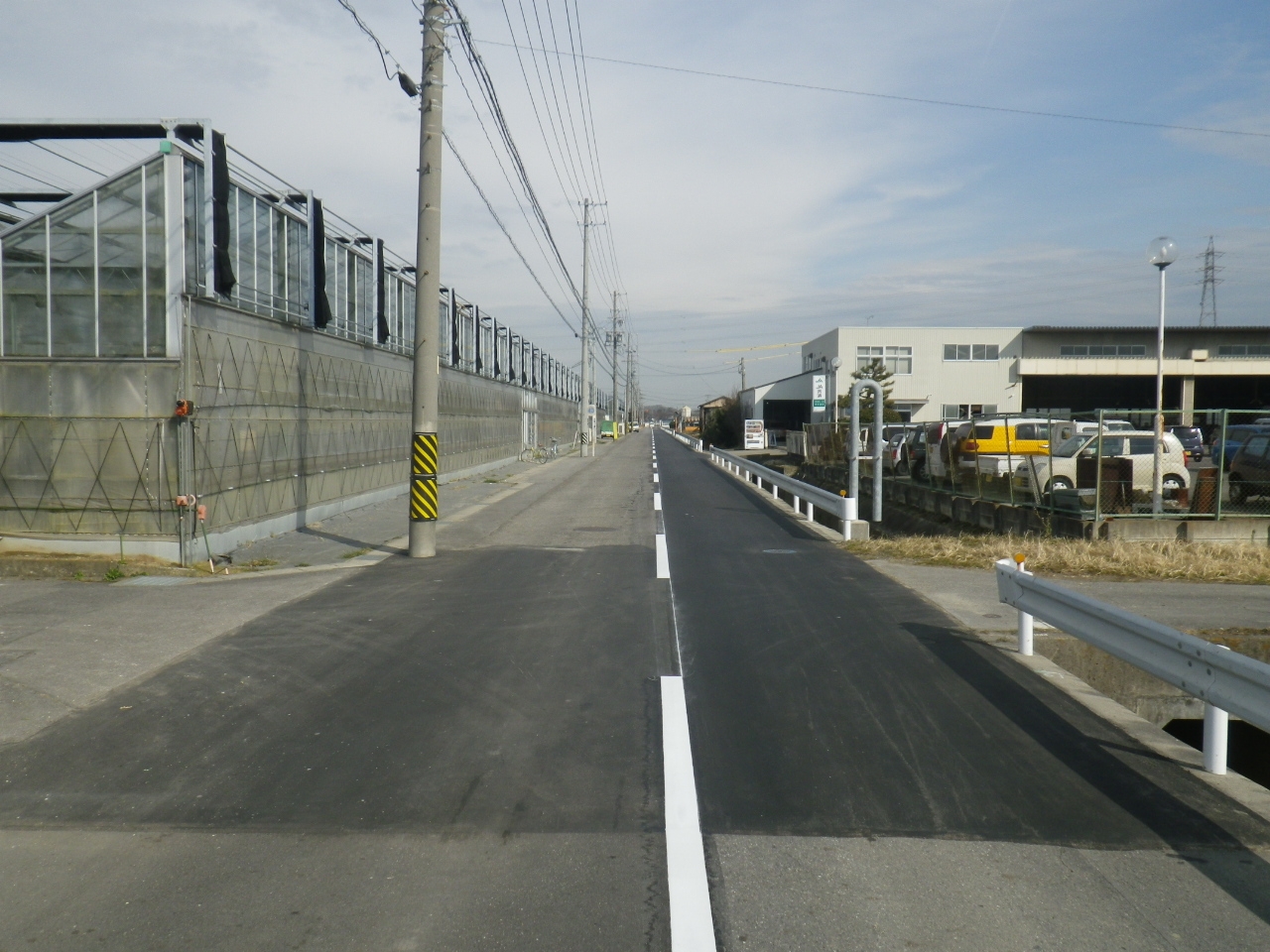 幡豆線第1工区外舗装復旧工事 愛知県企業庁発注で送水管敷設後の舗装本復旧工事です。現場は西尾市花蔵寺町地内外2箇所と施工区間が点在しており、また歩道から県道の3層までと舗装構成もさまざまで、かつ幅員もまちまちなので重機の選定、移動等を考えながらロスが出来るだけ少なくなるように、施工を行いました。それ以外の点では、民家、商店も少なく施工もし易い現場でした。