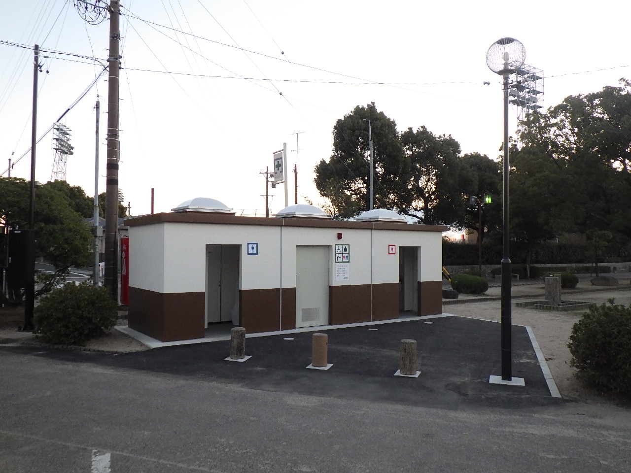 公園施設長寿命化改修工事 西尾市建設部公園緑地課より発注されたトイレを新設し、古いトイレを撤去する工事です。西尾の中心地に位置する西尾公園内で、周辺には、テニスコート、野球場、幼稚園、小学校があります。週末には、スポーツをする方々で大変にぎわうなどトイレの改修が望まれていました。今回設置したトイレは、工場で製作され、現地にて組立てられたもので、大変構造的に優れています。通路が狭く、搬入・設置には大変気を使いましたが、無事工事を完了することができました。
