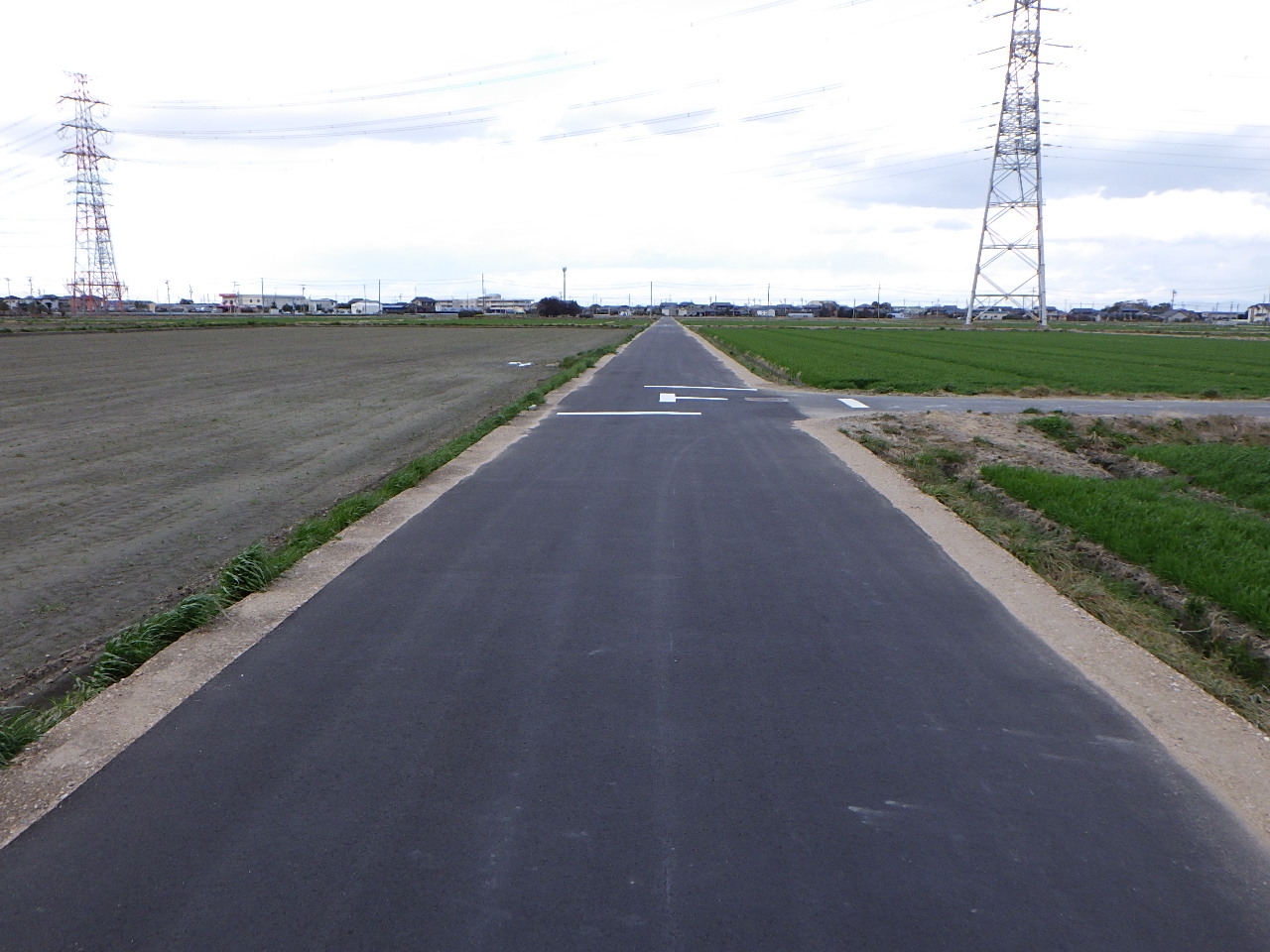 本工事は西三河農林水産事務所 幡豆農地整備出張所発注の経営体育成基盤整備事業の舗装工事です。工事場所は西尾市市子町及び八ヶ尻町、一色町地内です。今回の工事で3回目の受注となります。事業は今回で完了するとのことです。舗装構成は路床安定処理 t=40cm、下層路盤工 t=20cm、表層工 t=4cmの舗装構成で工事を行いました。一番大変なのは路床安定処理のセメント敷き均し作業です。一番多く敷き均した時は一日に100tのセメント敷き均しを行った日がとても疲れて一番大変でした。協力会社に助けて頂き、無事故、無災害にて工事を完成できるとこが出来てとても良かったです。