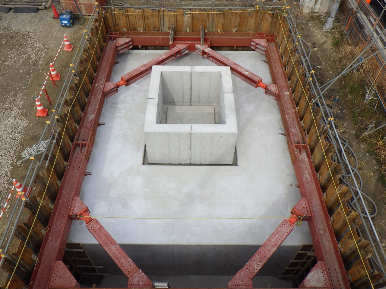 平成29年度23号蒲郡BP為当高架橋基礎工事 工事は、国土交通省名四国道事務所の発注工事であり、国道23号蒲郡バイパスの橋梁基礎工事です。現場は交差点横の現道際での工事を行いました。交差点横の為、交通量が多く、第三者災害に特に注意しました。協力業者さんと協力して施工を行った為、無事に工事が完了できました。