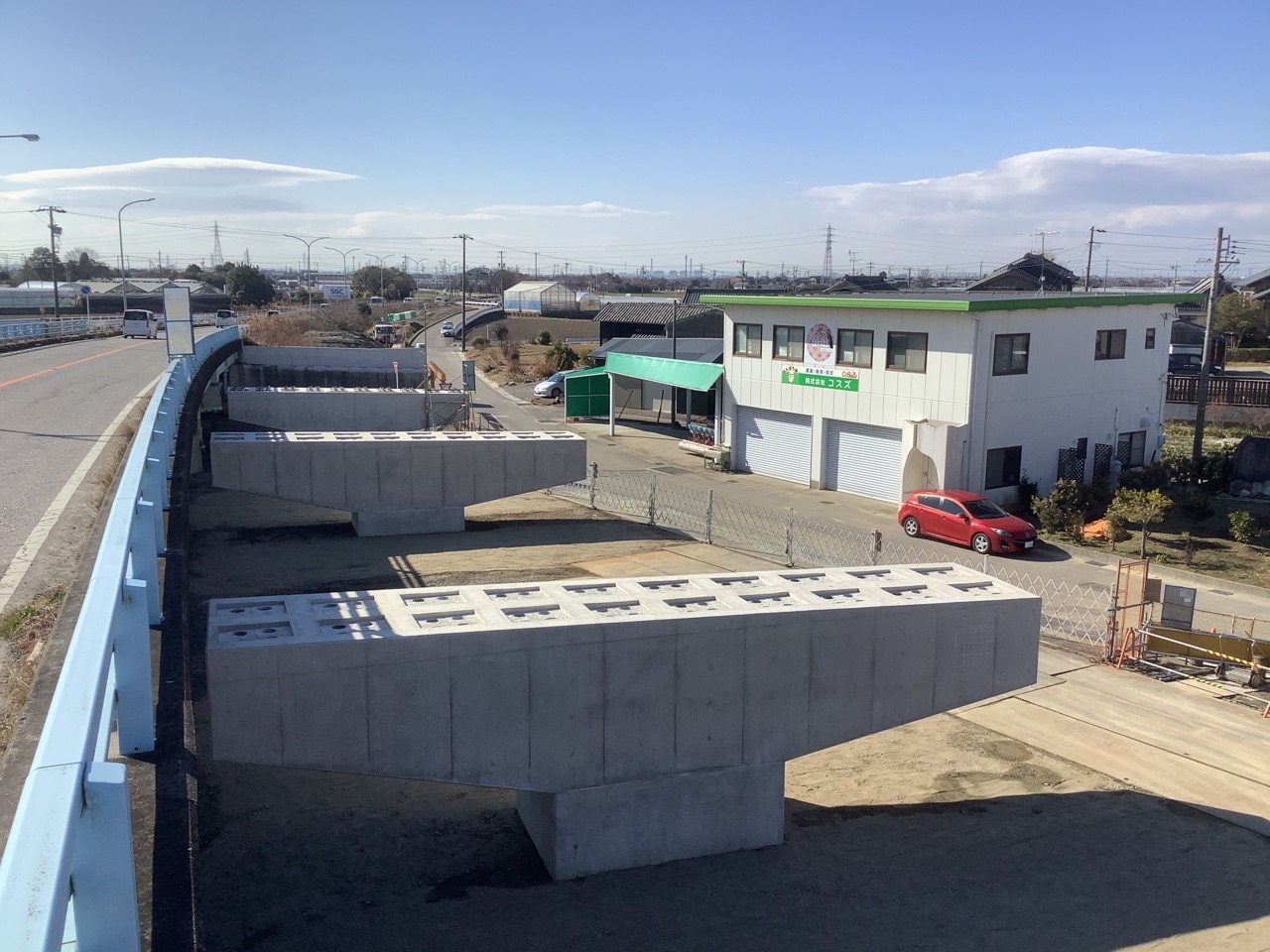県道蒲郡碧南線拡幅のための橋梁工事です。狭隘な環境での施工ではありましたが、工程、品質、出来栄えも満足できる橋脚を構築することができました。