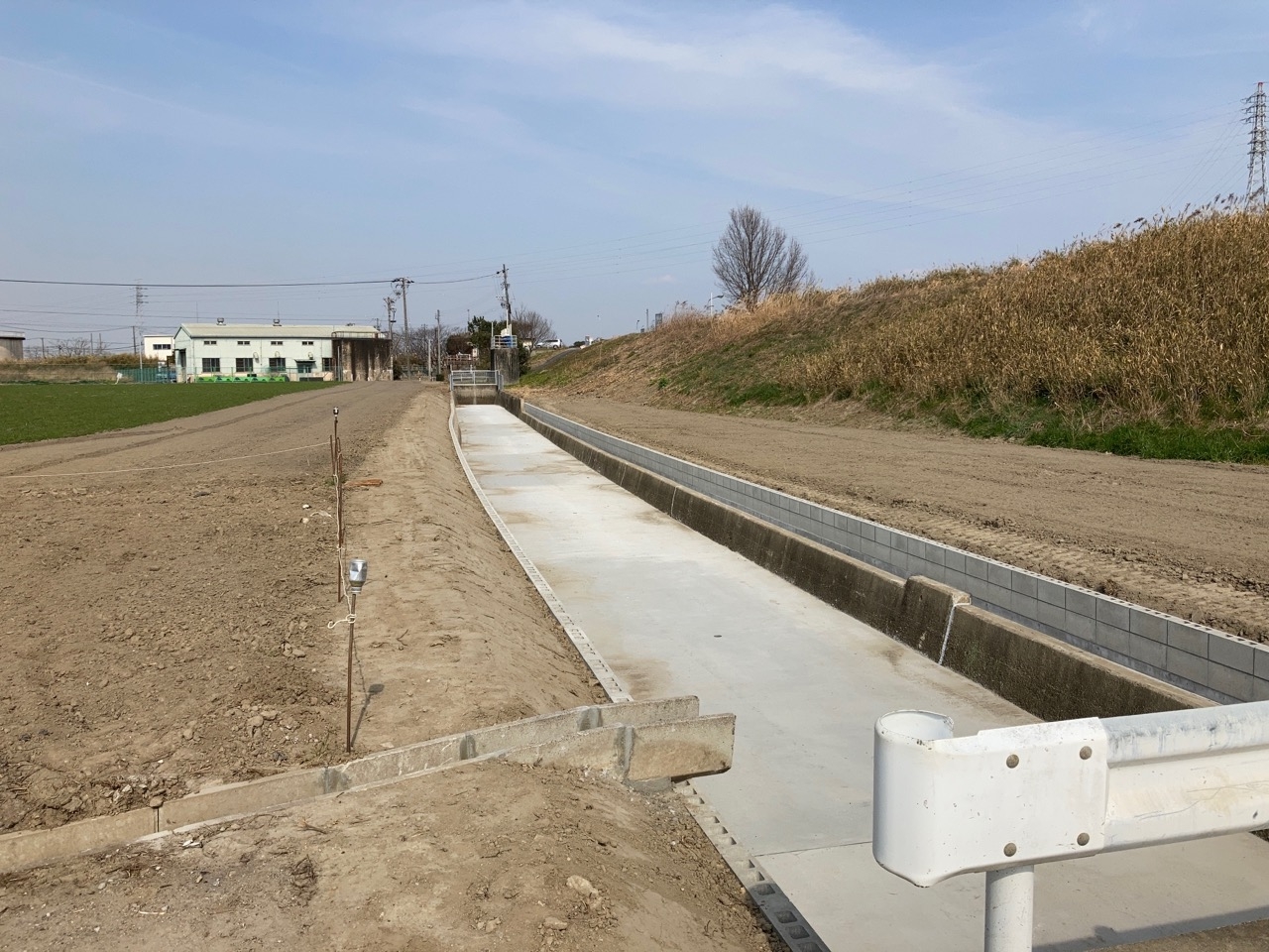 発注者は、福地広域協定運営委員会です。工事の目的は、現在、農業用配水はパイプラインを使用されており今回改修した水路は使われていませんが、地震等の理由で地中のパイプラインが損傷すると道路を止めなければならない等、時間がかかり、影響範囲が大きくなるのでこの水路を利用して農業への影響を最小にすることです。今回の工事でこの幹線水路の改修がすべて終了し不測の事態への準備が完了しました。