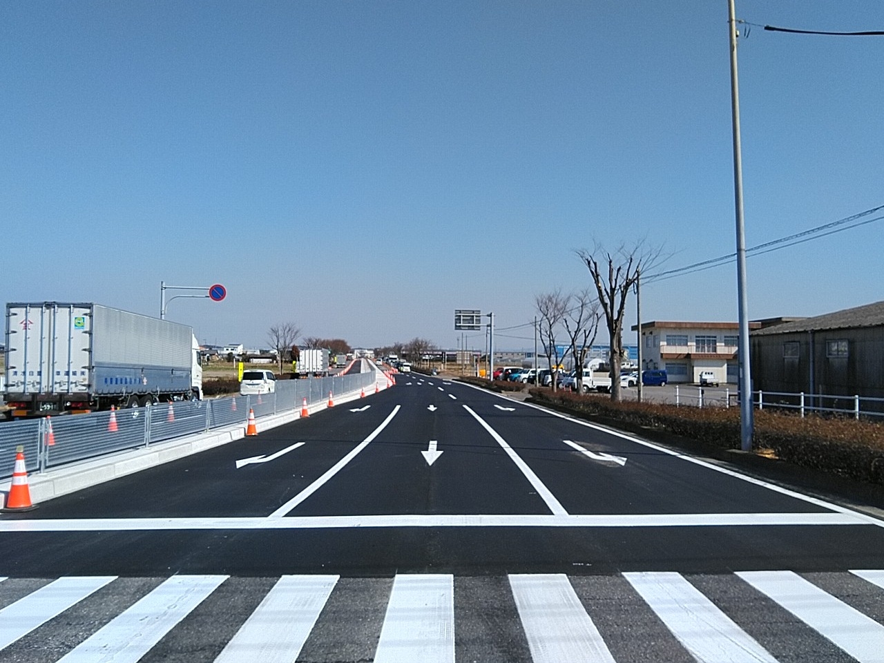 舗装道修繕工事(西尾その9)(一般県道蒲郡碧南線) 愛知県発注の舗装工事です。工事箇所は西尾市高河原町地内で工事延長230m、舗装面積1720㎡でした。現場が後に2車線となる蒲郡碧南線で非常に車の通りが多かったため規制の際は十分に注意して行いました。ダンプの搬入路が1か所しかなく渋滞の中での搬入だったので特に舗設時はアスファルトの温度が下がらないように保温対策を行いました。地元との協議に基づき曜日指定等ありましたが、予定通り施工することができました。