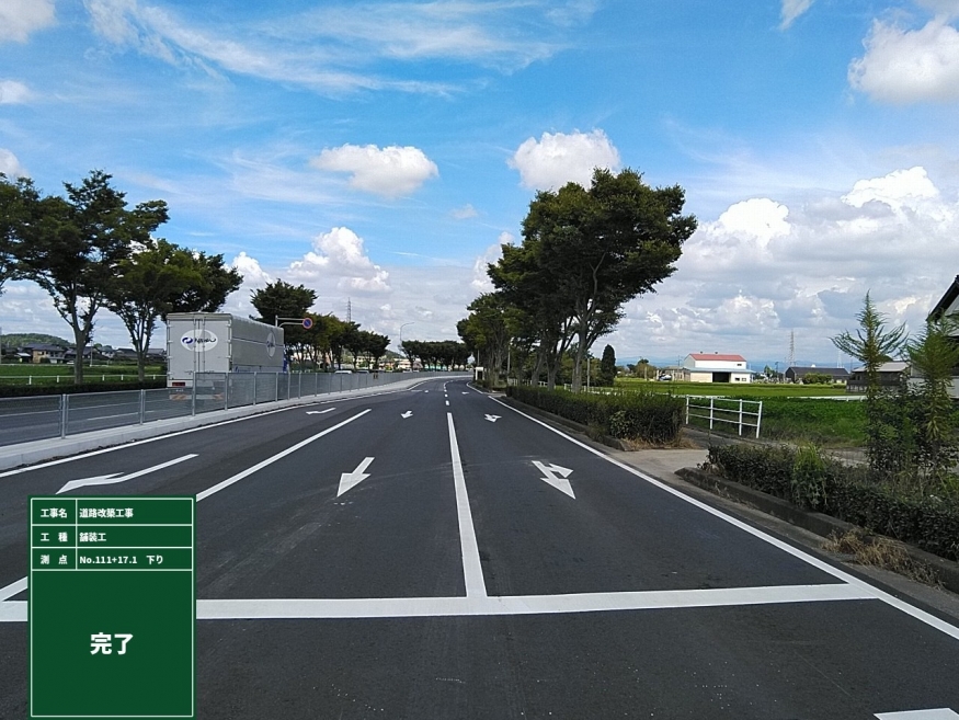 道路改築工事(主要地方道岡崎碧南線始め) この工事は愛知県西三河建設事務所発注の舗装補修工事です。工事場所は西尾市江原町、岡島町、高河原町地内で、県道岡崎碧南線~蒲郡碧南線の補修を行いました。一番大変だったのは施工時期が夏で気温が高く毎日が熱中症対策に苦労したことです。作業員の体調管理はもちろんのこと、休憩時間には熱中症対策水を配布し熱中症予防に努めました。この効果もあり熱中症は0件で無事に工事完成することができました。