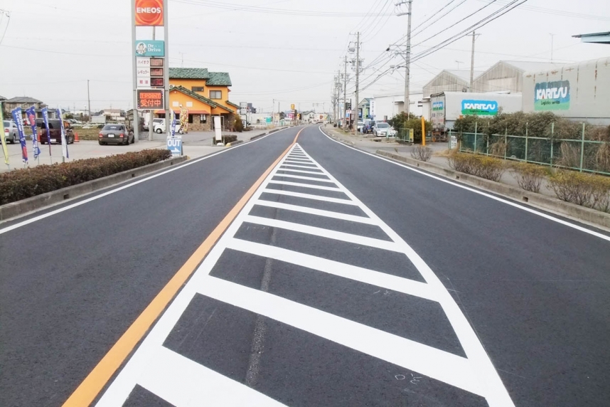 舗装道修繕工事(その3) 愛知県からの発注工事で、平成26年2月に完成。県道熊味岡崎線(岡崎市下青野町地内)の老朽した道路の舗装を補修する工事です。この工事は夜間の工事も行いました。交通量が多い区間の工事で警備員さんも苦労されましたが、無事故・無災害に工事は完成出来ました。