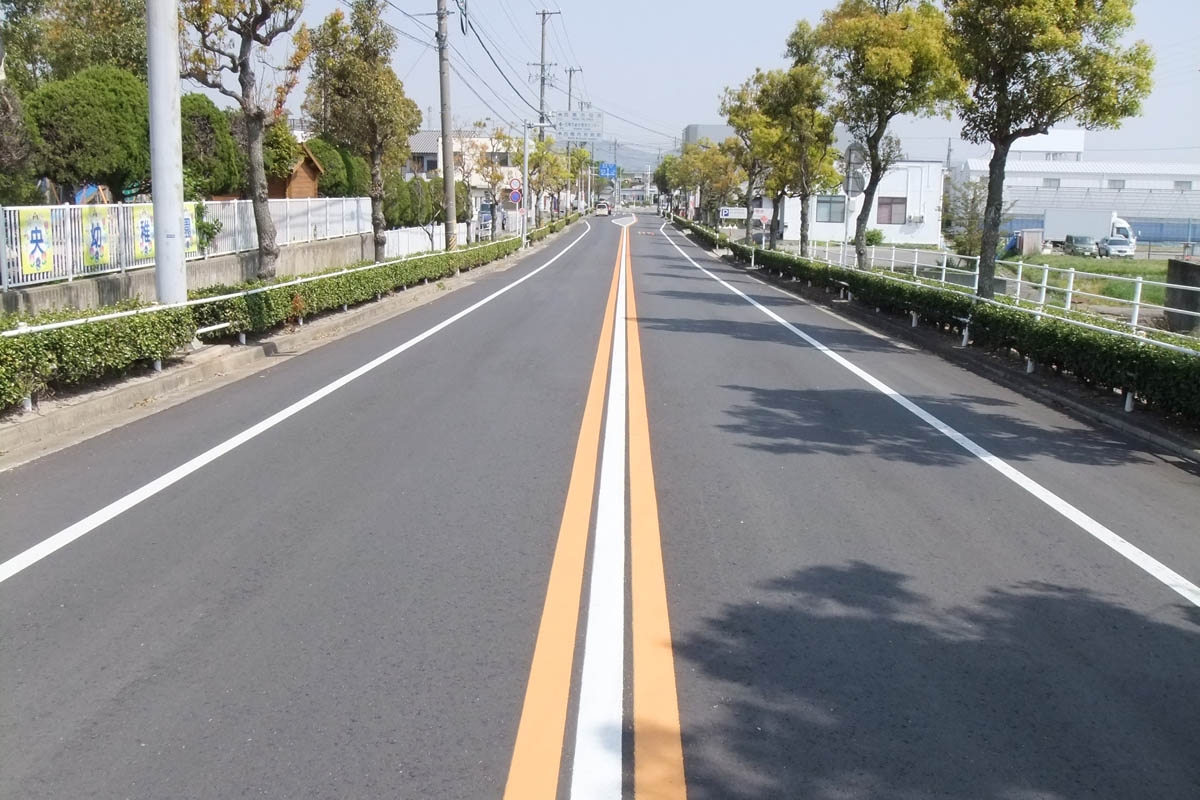 舗装道修繕工事 愛知県からの発注工事で、平成24年11月に完成。地方道岡崎碧南線(西尾市曽根町地内)の老朽化した道路の舗装を現地混合にて補修する工事です。交通量の多い場所での施工で事故には意識過剰なほど気を遣いました。その甲斐あって無事故で無事に完成出来ました。