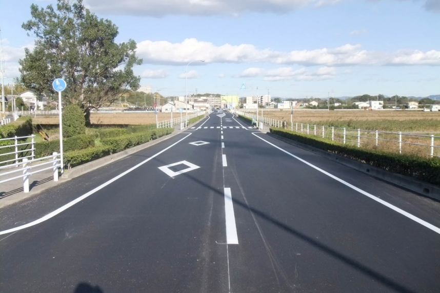 舗装補修工事(西尾24-1) 愛知県からの発注工事で、平成25年12月に完成。 県道熊味岡崎線(西尾市志籠谷町地内)の老朽化した道路の舗装を現地混合にて補修する工事です。まっすぐに伸びる道路がきれいな場所であり、出来栄えに満足した工事が完成出来ました。