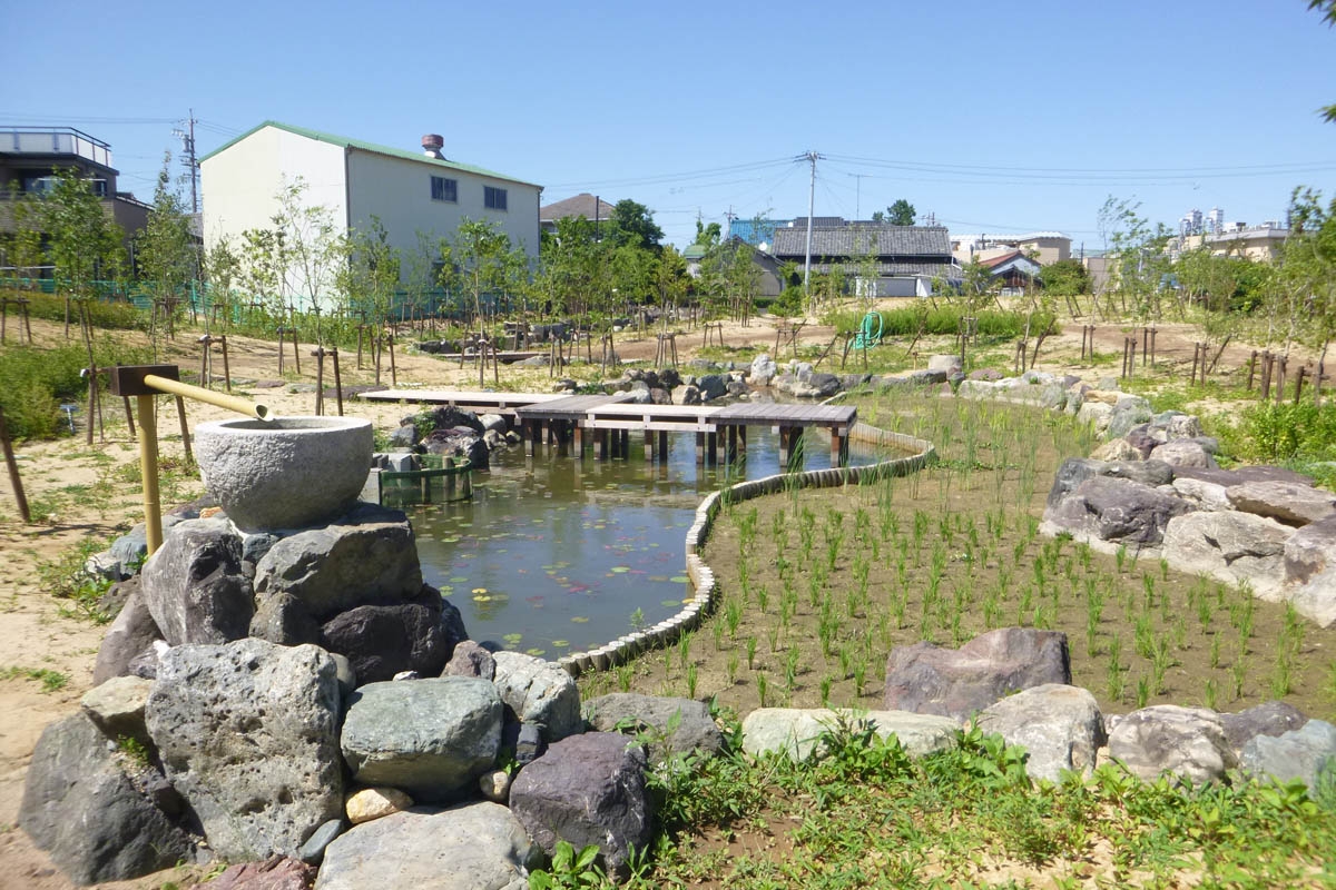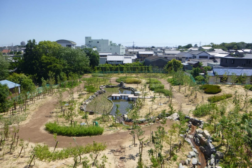 西尾農地整備工事 個人からの発注工事で、平成27年3月に完成。本来この地域に生息している草木、昆虫等がそのまま生息し続けられる場、及び地域の子供が泥だらけになって遊ぶことのできる公園を築造する工事です。顧客より非常に高い評価を頂き、満足できる工事を完成出来ました。