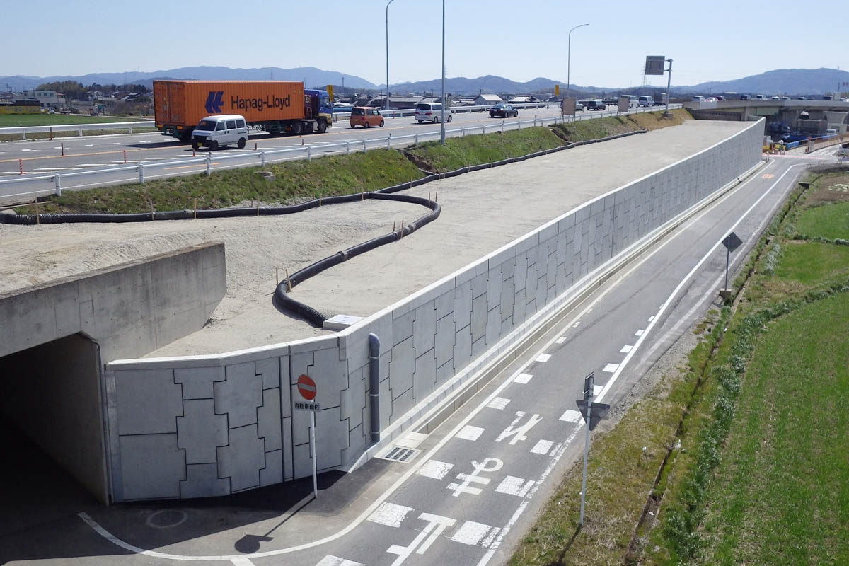 平成25年度 23号岡崎BP西尾地区道路建設工事 国交省からの発注工事で、平成26年3月に完成。国道23号岡崎バイパスの築造工事です。地元の主要幹線道路に携われた事に担当者一同、誇りを感じています。自分の造った道で毎日通勤する度に、他の職種には無い喜びと、少しづつ小さくはなっていますが、当時の苦労を思い出します。苦労の甲斐があり無事に完成出来ました。