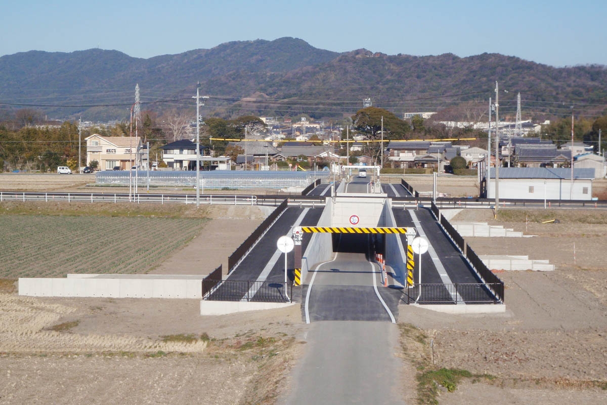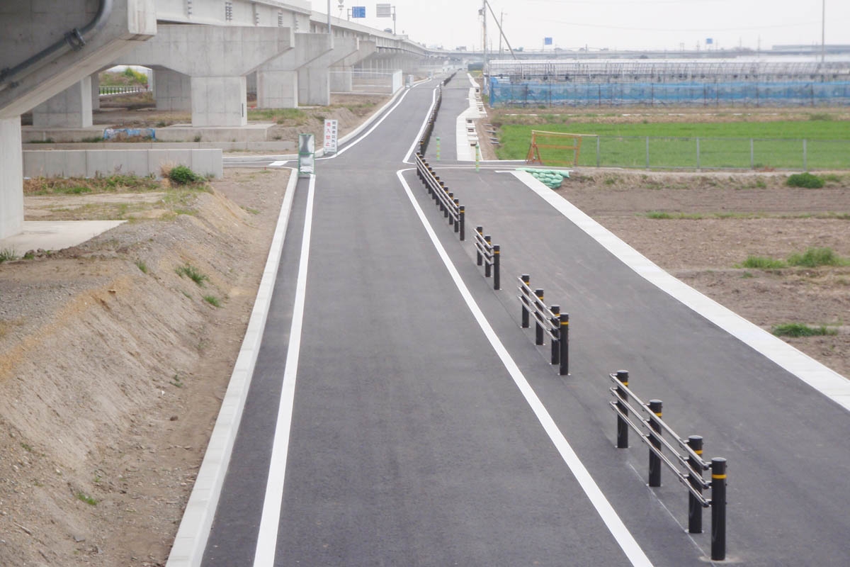 平成25年度 23号豊橋BP御津・小坂井側道建設工事 国交省からの発注工事で、平成26年3月に完成。 国道23号豊橋バイパスの豊川市御津町~為当町間において側道をつくる工事です。側溝とアスファルト舗装によりきれいな道路になり、地元の方も喜んで頂きました。何より嬉しいことは、無事故・無災害にて完成出来ました。