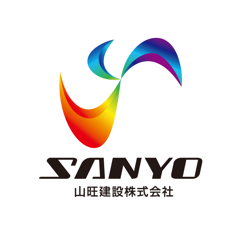 シンボルマークはSANYOの「S」と「Y」で構成しました。「S」は人工的に彫りこんだ立体表現で、創造されたカタチを意味しています。これは土木・建築の創造と結びつきます。「Y」は派生する弧線を加え、人に見立て、建造物で暮らす人、街で暮らす人、創造する山旺建設の社員を表しています。空間に拡がる弧線の構成で無限の拡がりを意味し、山旺建設の事業の多様性、発展性を表し、明るい社会、未来を創造していく使命感を表しています。